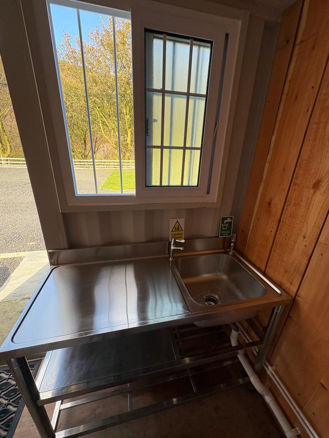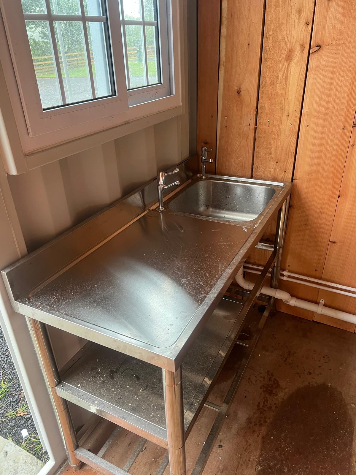 A dedicated dishwashing area with convenient sinks and space makes cleaning up after meals quick and easy for campers.